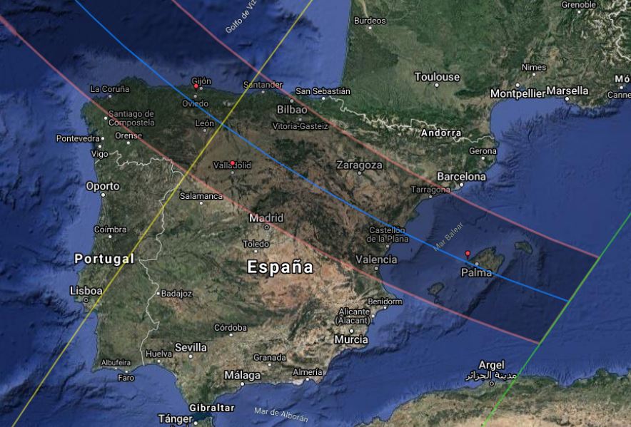 • Capitales Provinciales: Ciudades como Oviedo, León, Bilbao, Burgos, Valladolid, Zaragoza, Tarragona, Castellón de la Plana, Valencia y Palma de Mallorca se encuentran en la franja de totalidad. En Oviedo, la magnitud del eclipse será de 1,015, con una duración de la fase de totalidad de aproximadamente 1 minuto y 48 segundos. Wikipedia